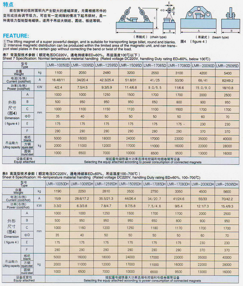 LMR-D系列吊運(yùn)方坯、圓坯、板坯用矩形起重電磁鐵